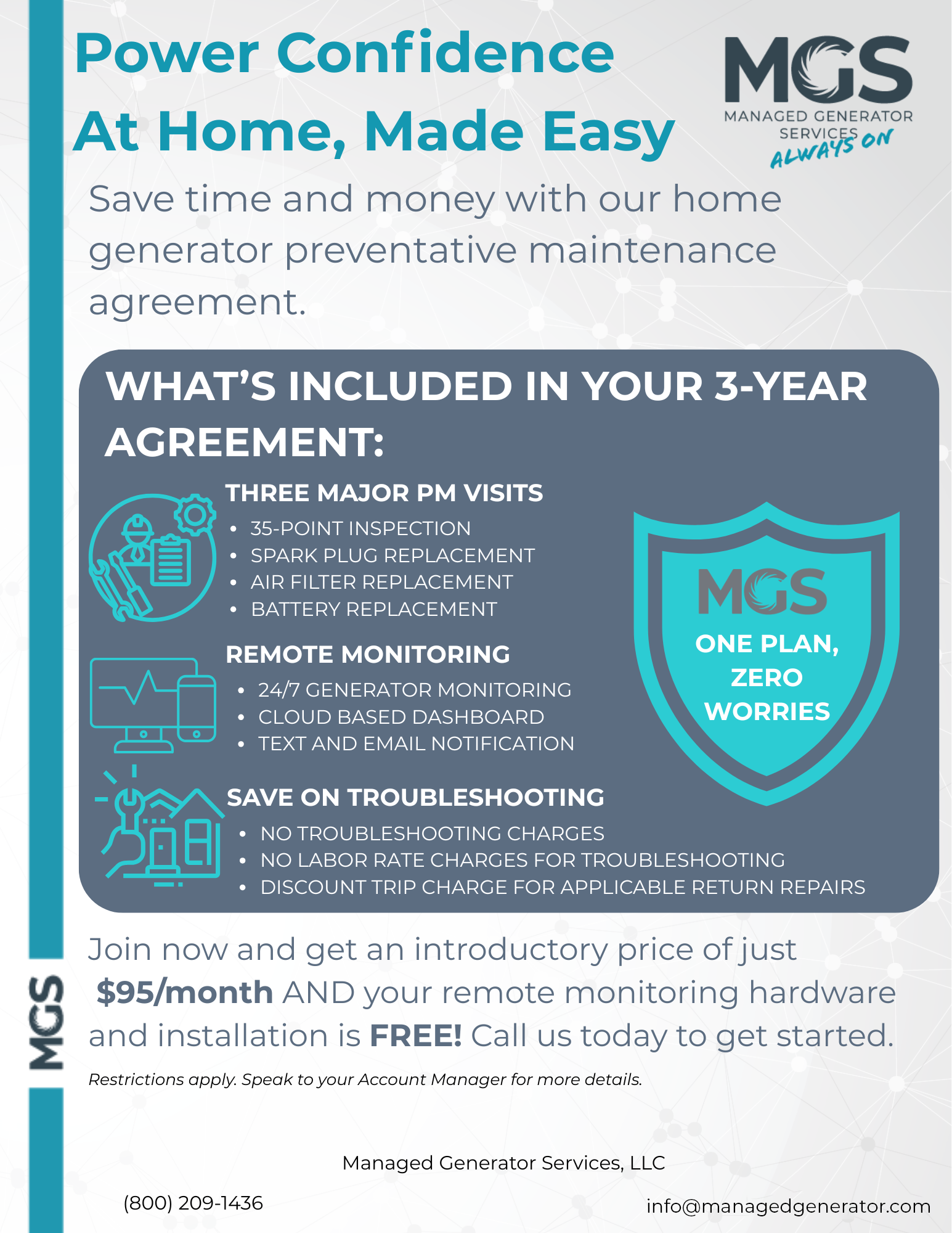 At Managed Generator Services, we keep your standby generator reliable, year-round. Whether you need expert repairs or the reassurance of a maintenance plan, we’re here to help you power through any outage.